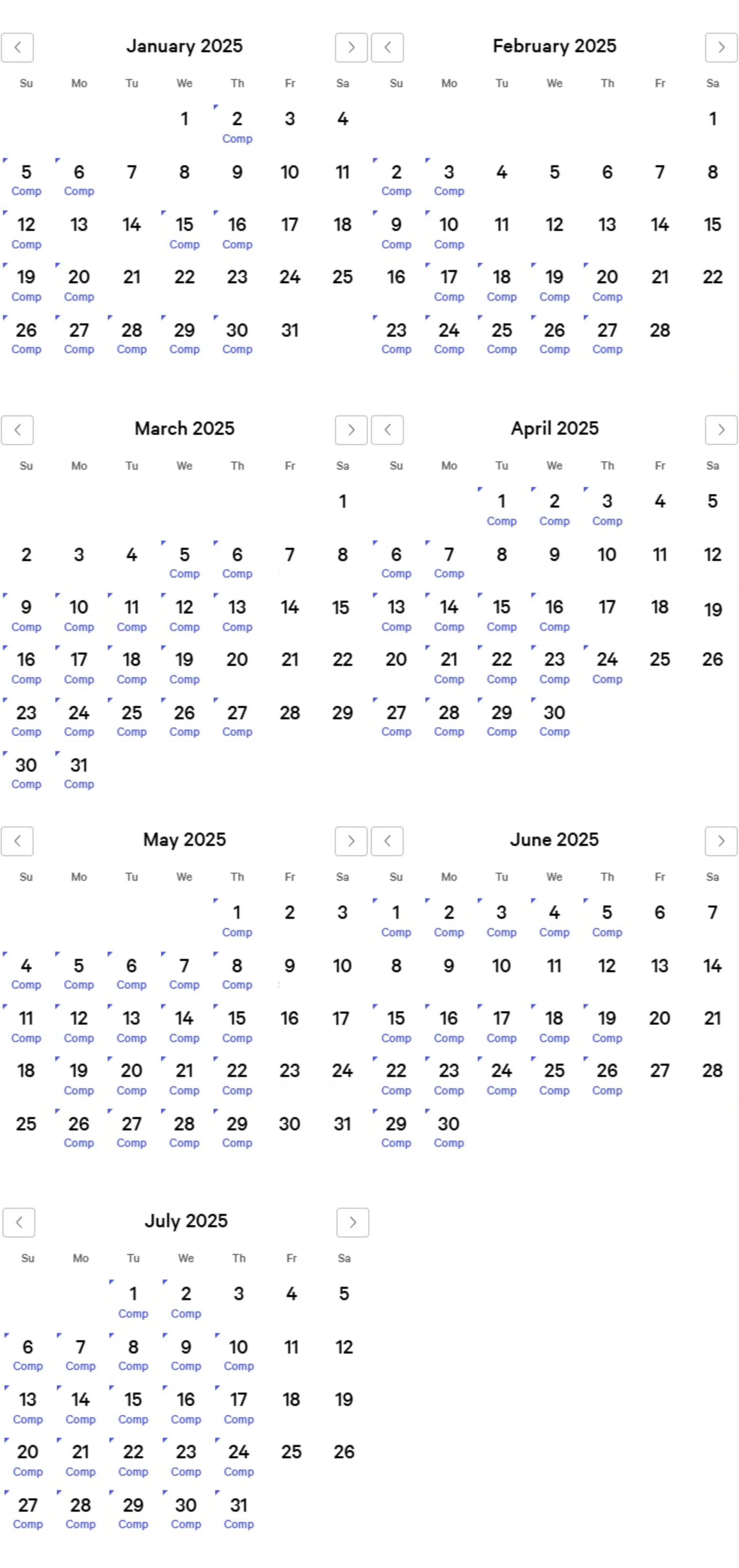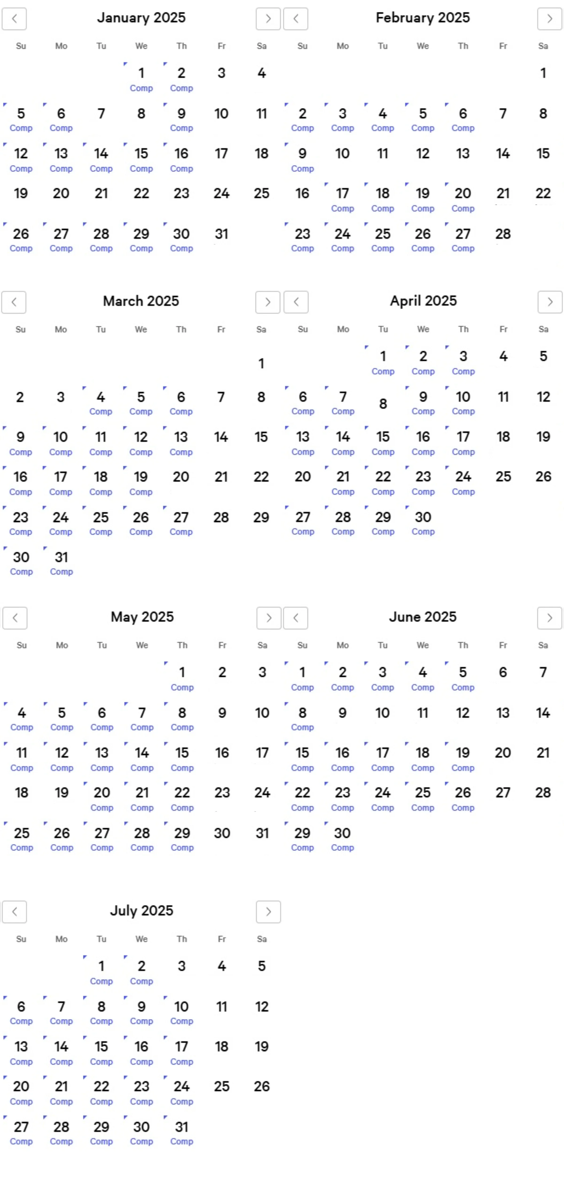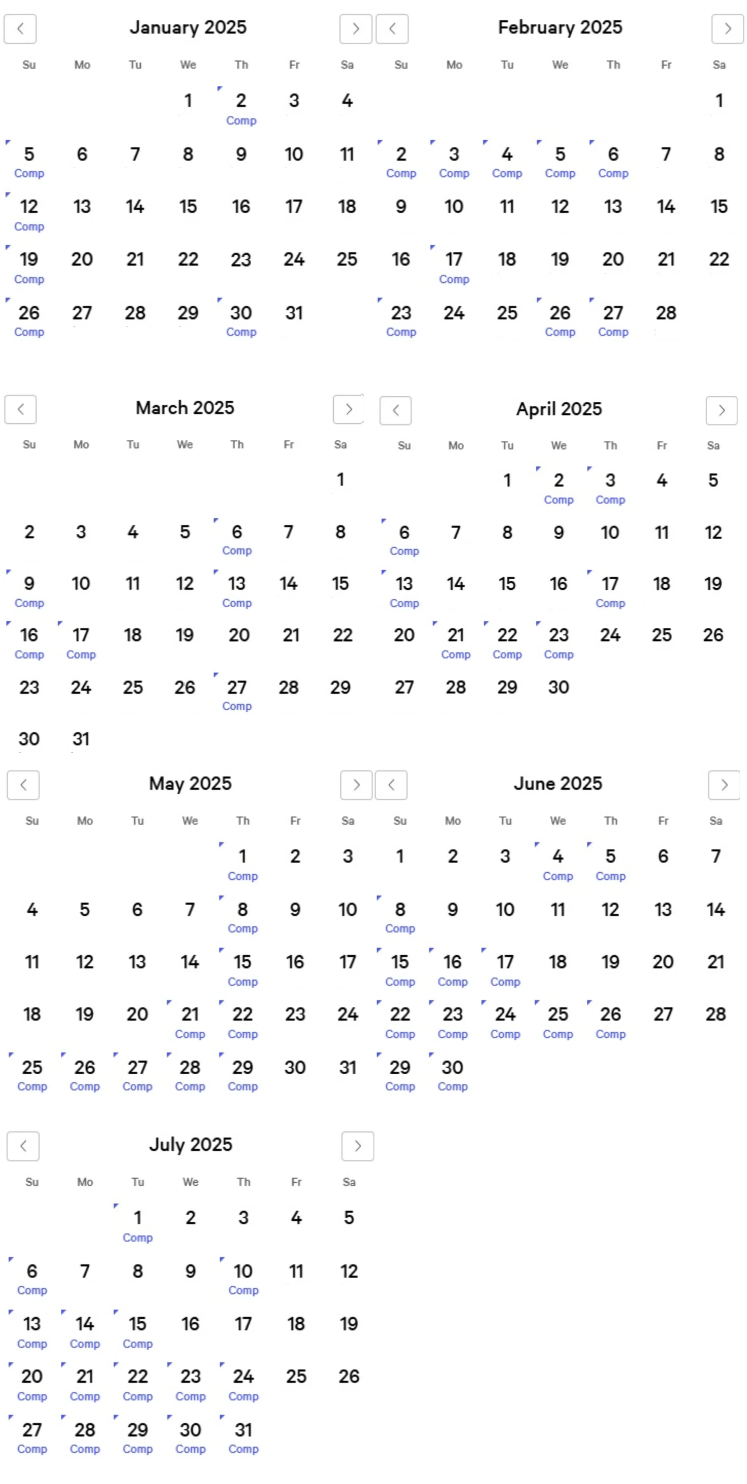 Luxor Comp Calendar