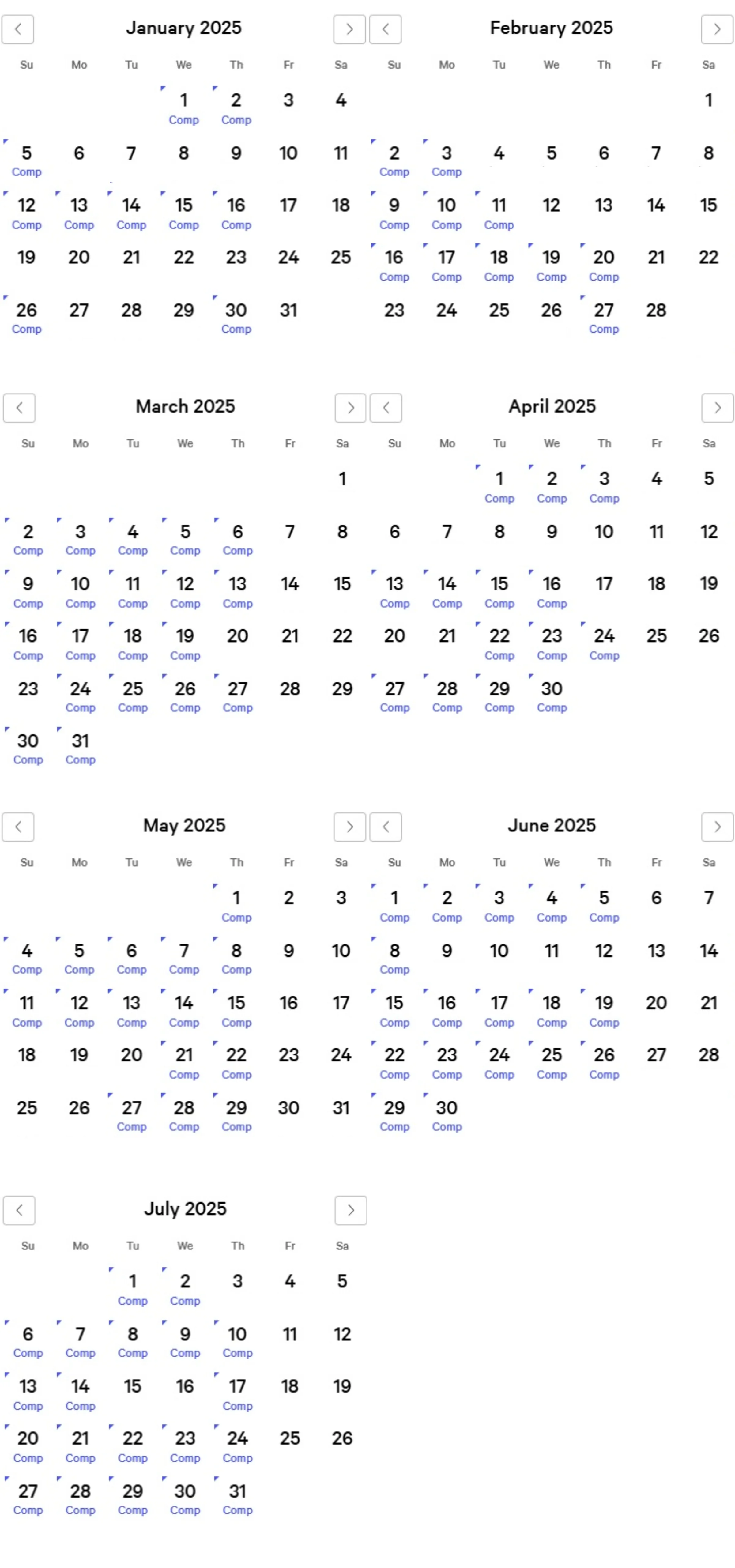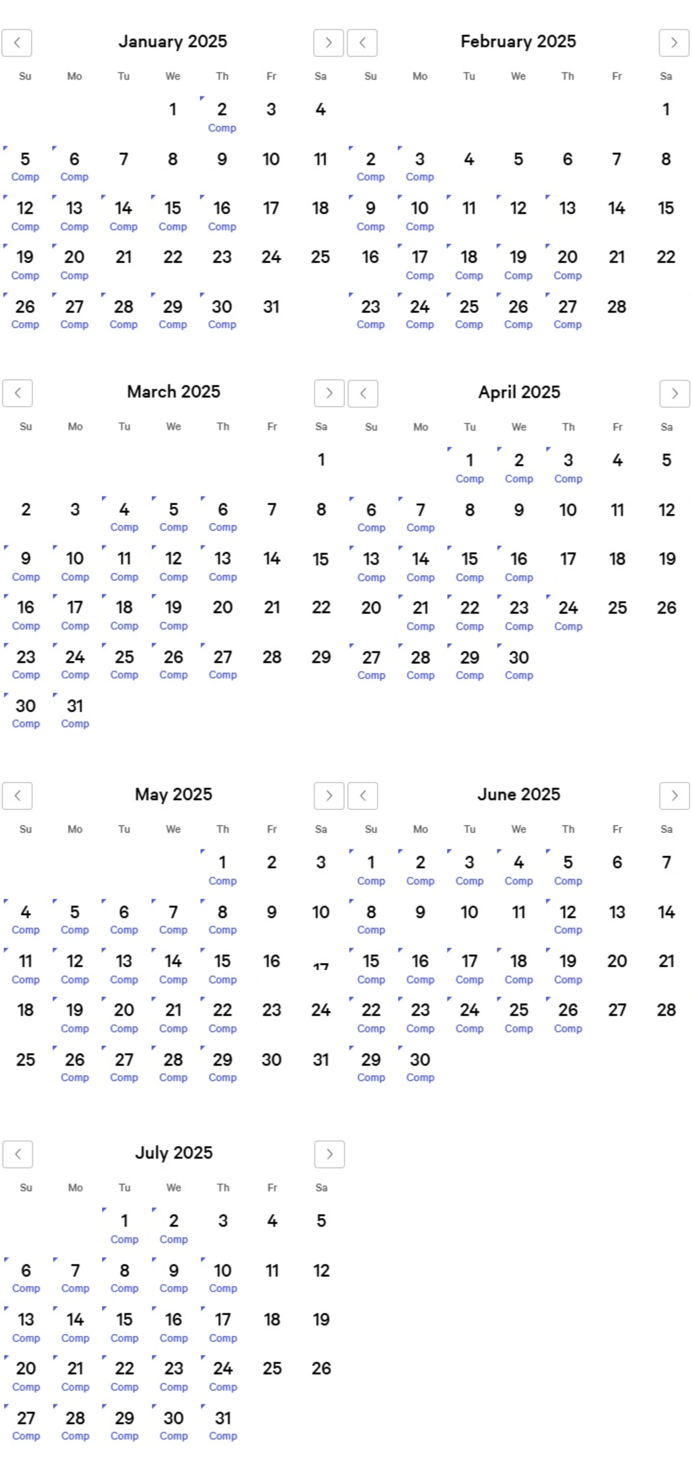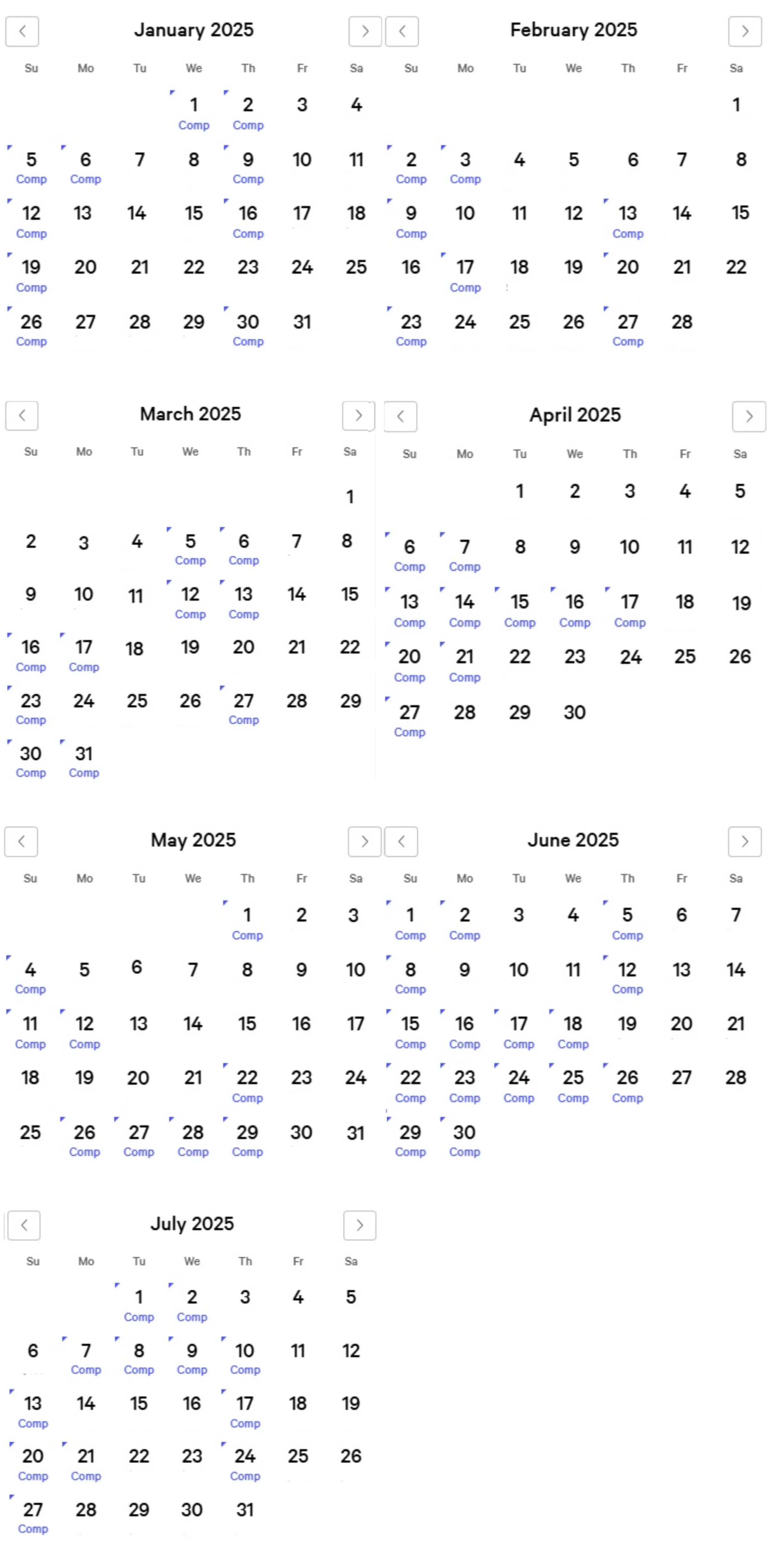Luxor Comp Calendar