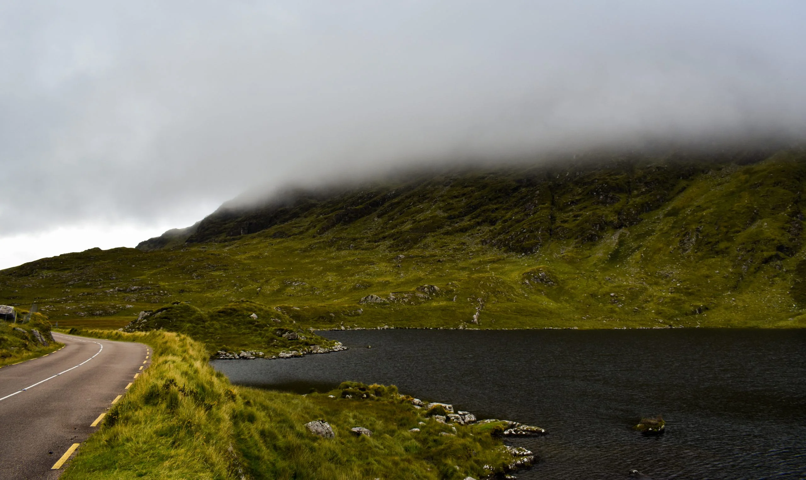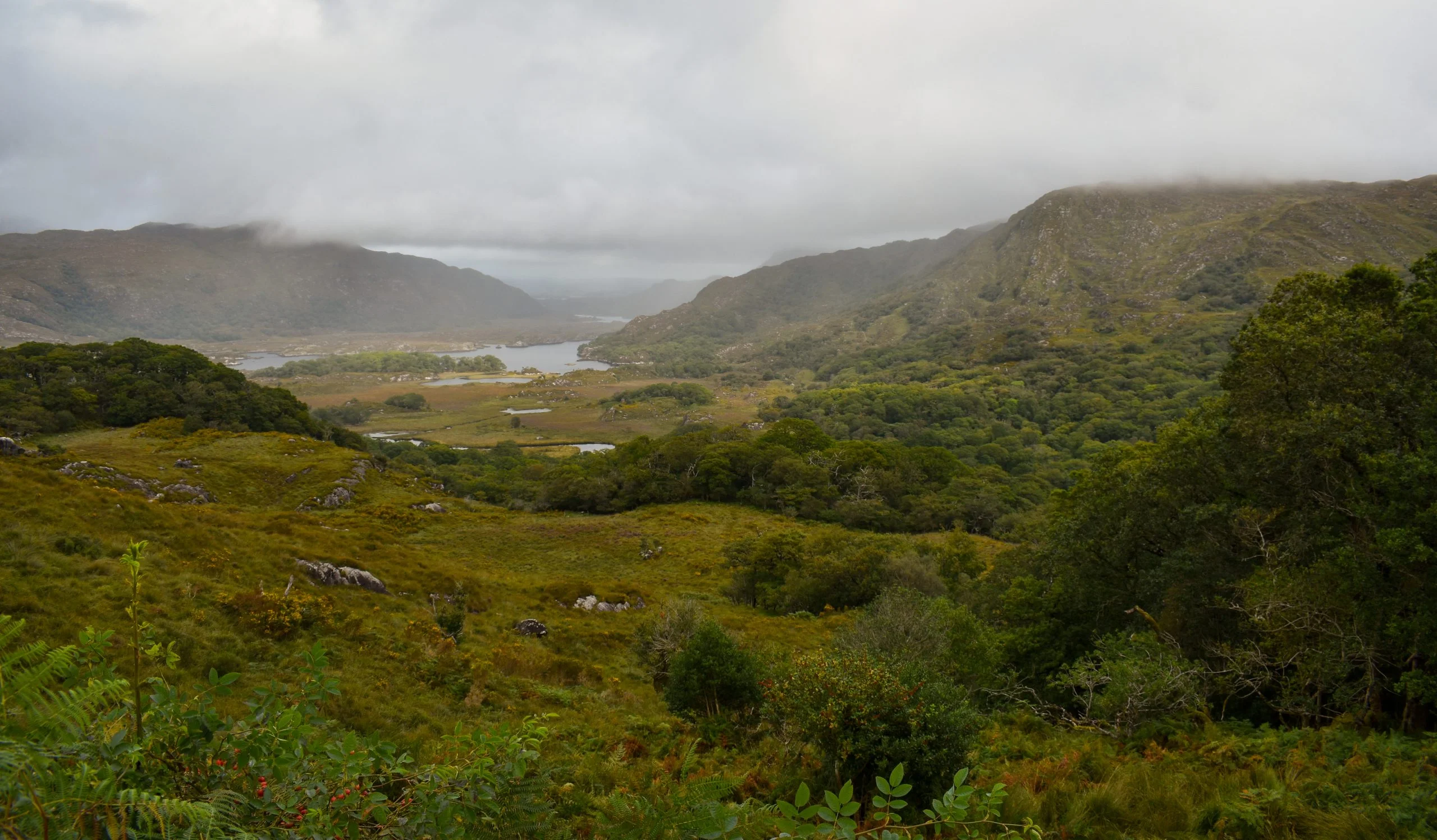 Along the N71 route, there is a pull-off to view Killarney Upper Lake. You can walk to the water’s edge from here, where I observed the fog lifting off the landscape, which created a dramatic, picturesque scene.